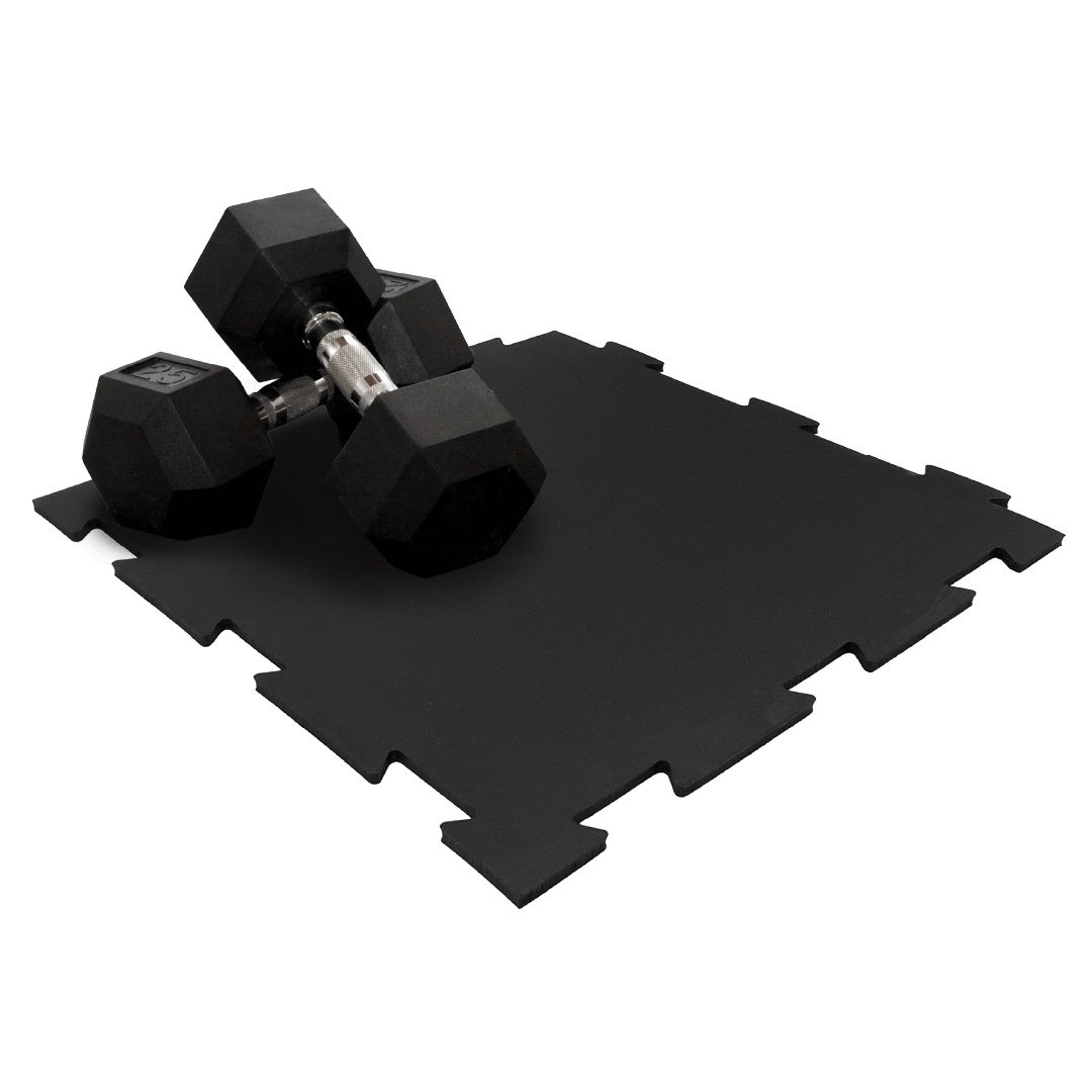 Foam and rubber gym flooring tiles cater to different fitness needs. Foam tiles, with their softness, are ideal for floor exercises like sit-ups and planks, or for creating safe play areas for children. However, if you plan to install cardio or strength training equipment such as treadmills, weight machines, dumbbells, barbells, or squat racks, we highly recommend our Stamina gym flooring. Its durability and stability provide the perfect lifting surface for exercises like deadlifts, squats, and bench presses. Additionally, rubber gym flooring offers a stable base for cardio and strength machines, ensuring they remain sturdy and don't leave imprints on the floor beneath, no matter how much weight is applied. This ensures that your underlying floor is always protected.